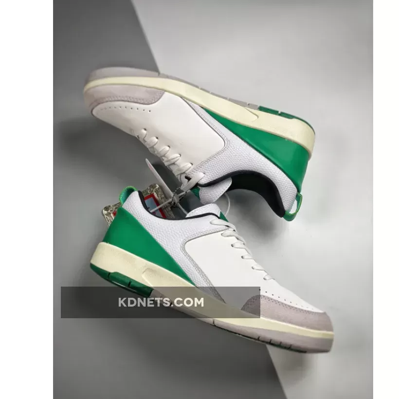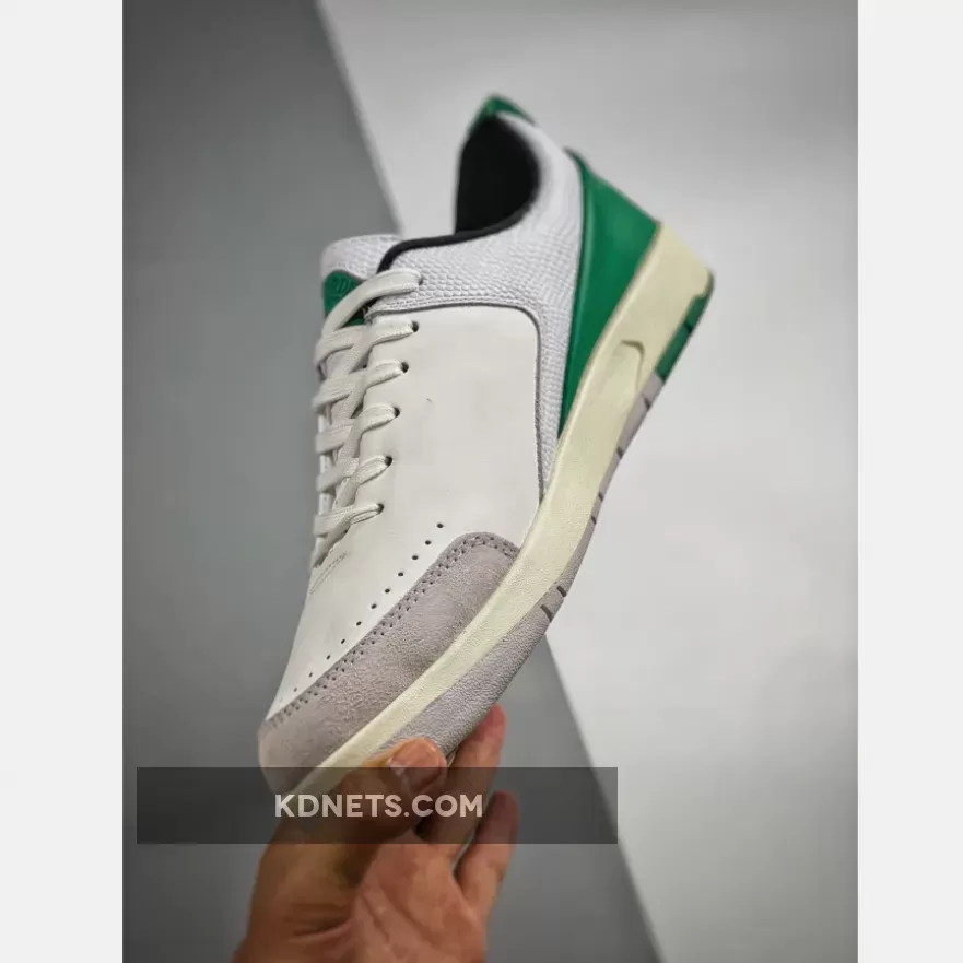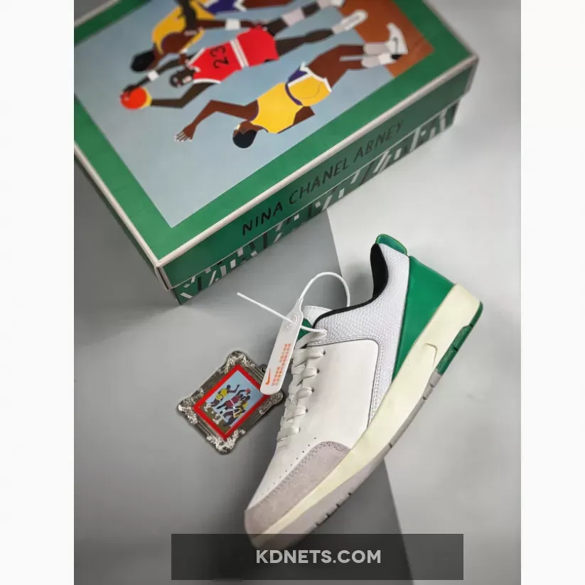 The Nina Chanel Abney x Wmns Air Jordan 2 Retro Low SE delivers the contemporary artist’s pared-down interpretation of the classic silhouette. The low-top features a white leather upper with a tonal suede toe wrap and a lizard-textured midfoot overlay. Contrasting green accents settle on the heel panel, pull tab, and an embossed Wings logo on the tongue. Mismatched sockliners feature a Jumpman logo on the left shoe and ‘Nina Chanel Abney’ inscribed on the right. The sneaker rests on an off-white polyurethane midsole with encapsulated Air-sole cushioning.