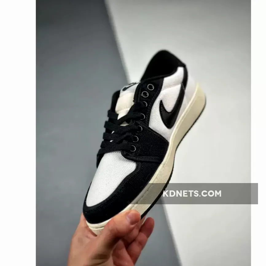 Dressed in a White, Black, and Sail color blocking giving off that “Panda” vibe. This offering of the Air Jordan 1 KO Low comes constricted in a full White and Black canvas base with Black leather Swooshes and heel overlay. Other details includes “Nike” logos on the tongue tags and insole with White Wings embroidery on the heels. White nylon tongues, sizing stamped on the inner lining atop a Sail midsole and Black rubber outsole completes the design.