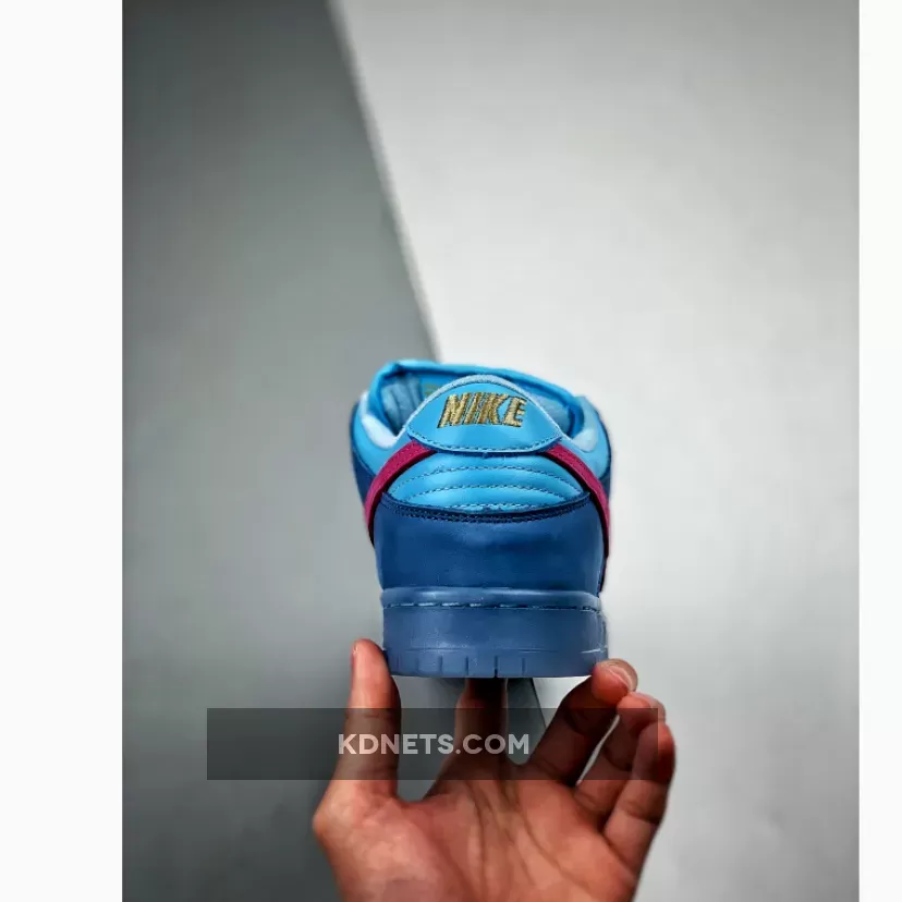 on the side panels, Metallic Gold Nike branding on the tongue tags and heel tabs, and a translucent midsole/outsole. University Blue is seen on the translucent outsole with Run the Jewels branding seen in Marina Blue.