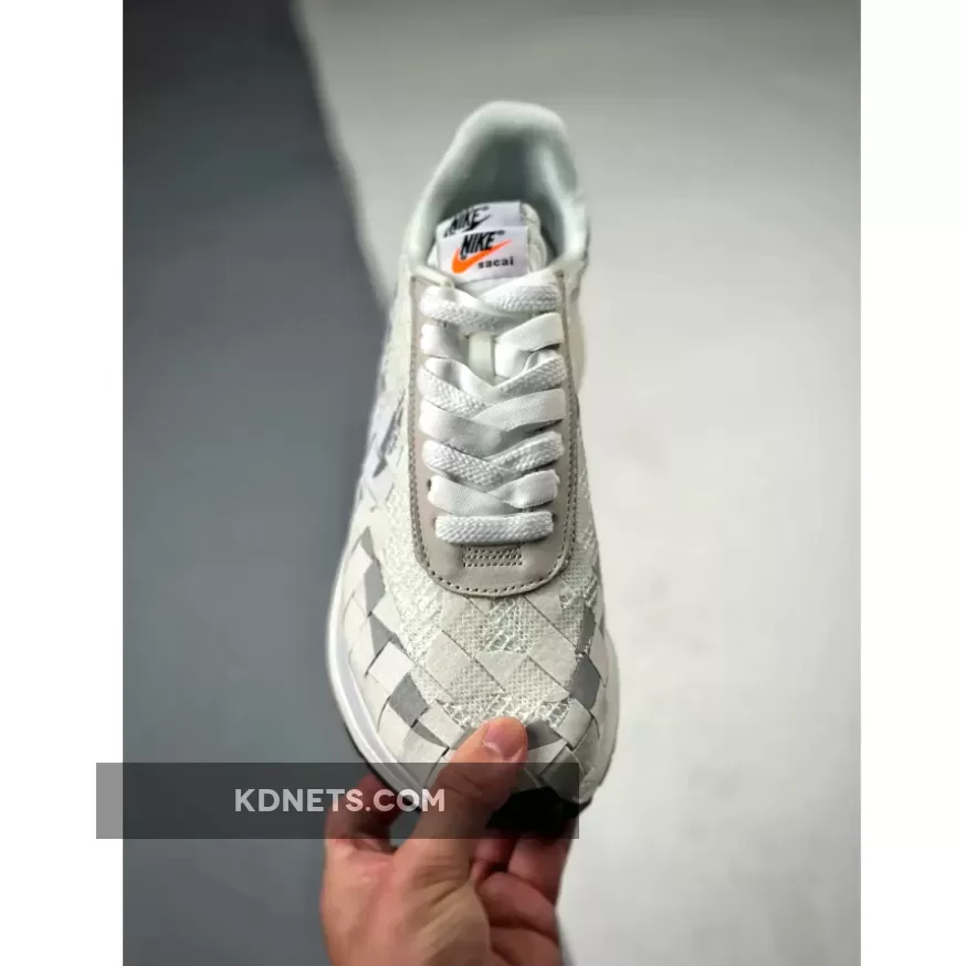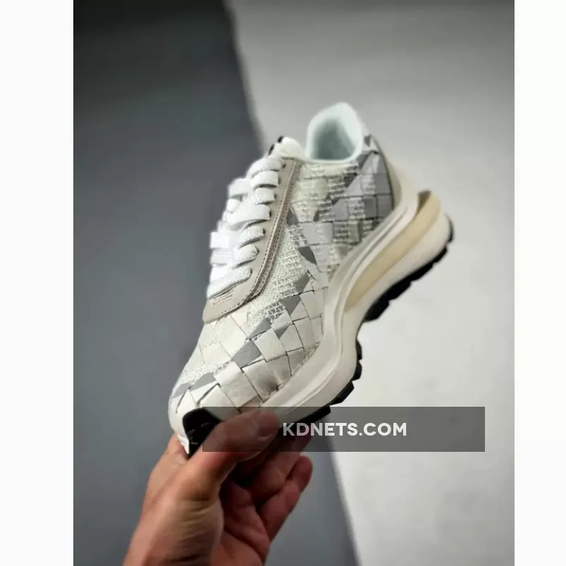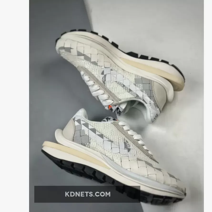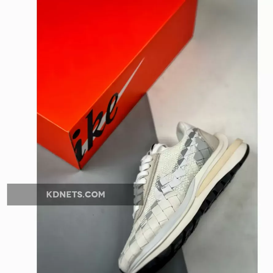 This Sacai x Nike VaporWaffle iteration sports a fresh White and Sail color scheme, ideal for summer. sacai’s signature doubled look is seen throughout, notably on the tongue and midsole. The woven finger trap look is used throughout the upper, as mesh, suede, and Fuse are used throughout the busy sneaker. The double cream midsole is finished off with a rugged black outsole. sacai and Nike co-branding is found on the tongue and heel, and while we can’t see any Jean Paul Gaultier branding in the images provided, it’s most likely on the insole like the previous colab.