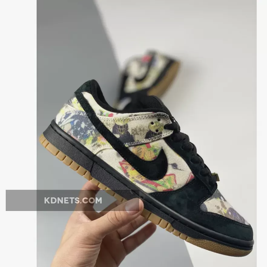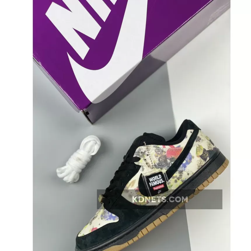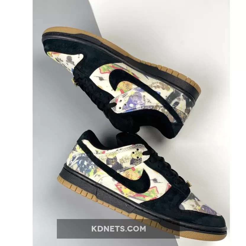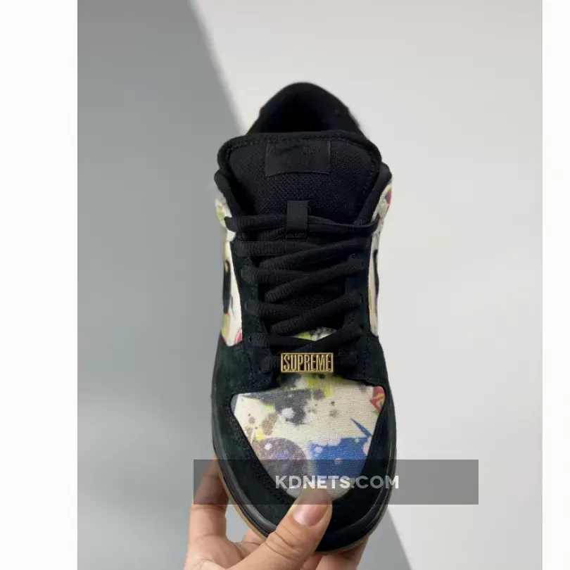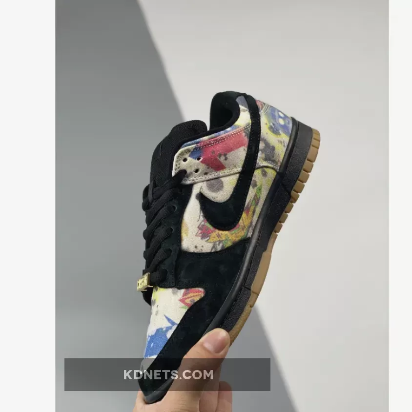 This offering of the Supreme x Nike SB Dunk Low upper is coated in a black upper crafted from suede and canvas materials. Highlighting the sneaker is Rammellzee’s artwork on the toe box, quarter panel, collar, and heel overlay. Other details includes Black suede overlays on the forefoot, eyestay, and Swooshe. Like past collabs, the shoe features a gold “SUPREME” lace dubrae that includes a co-branded hang tag. A Black midsole atop a Gum rubber outsole completes the design.