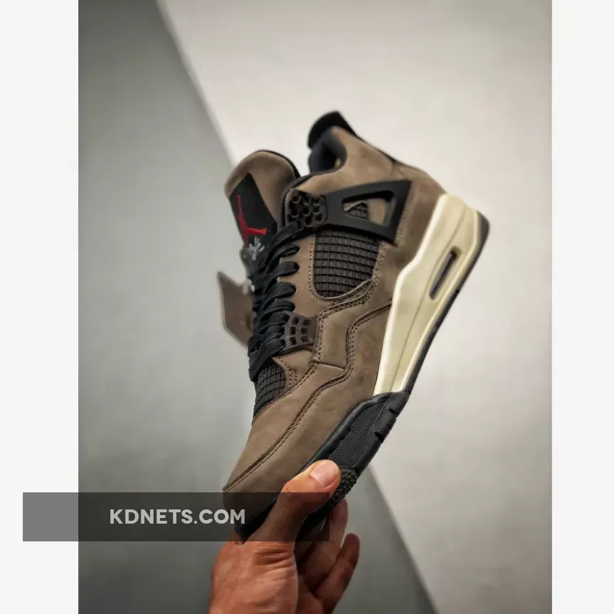 This Air Jordan 4 by Travis Scott, aka Cactus Jack comes highlighted with an Olive nubuck upper with Black accents. Following we have mismatched Black and White midsoles while Olive runs across the outsole. What most will think is the highlight is both Nike Air and Cactus Jack branding on the heels.