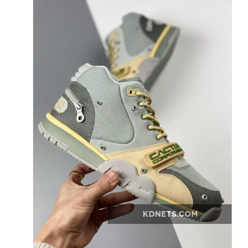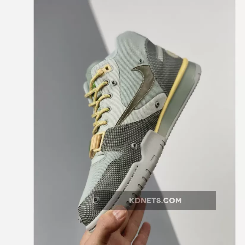 One of at least two takes from the Houston-native on Tinker Hatfield’s iconic 35-year-old design, the upcoming sneakers delivers an experimental onto the cross-training model. Traditional leather is replaced with rugged corduroy and ribbed mesh, with the former covering the majority of Scott’s latest Nike collaboration. Perforate suede makes up the tongue, and blends in with its direct surrounding’s “Grey Haze” makeup.