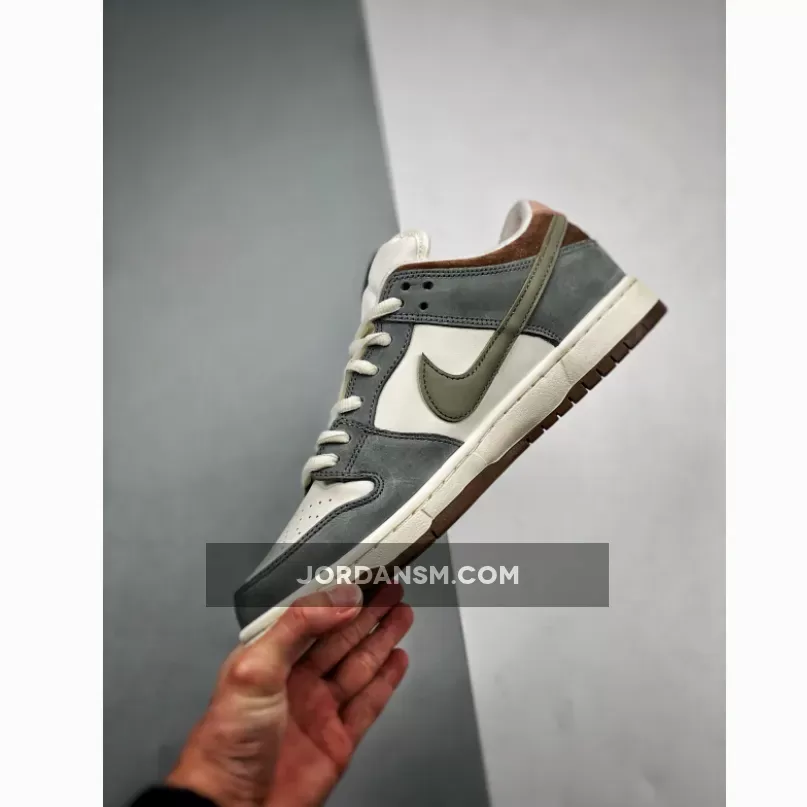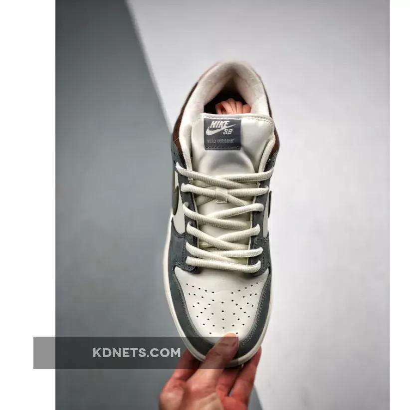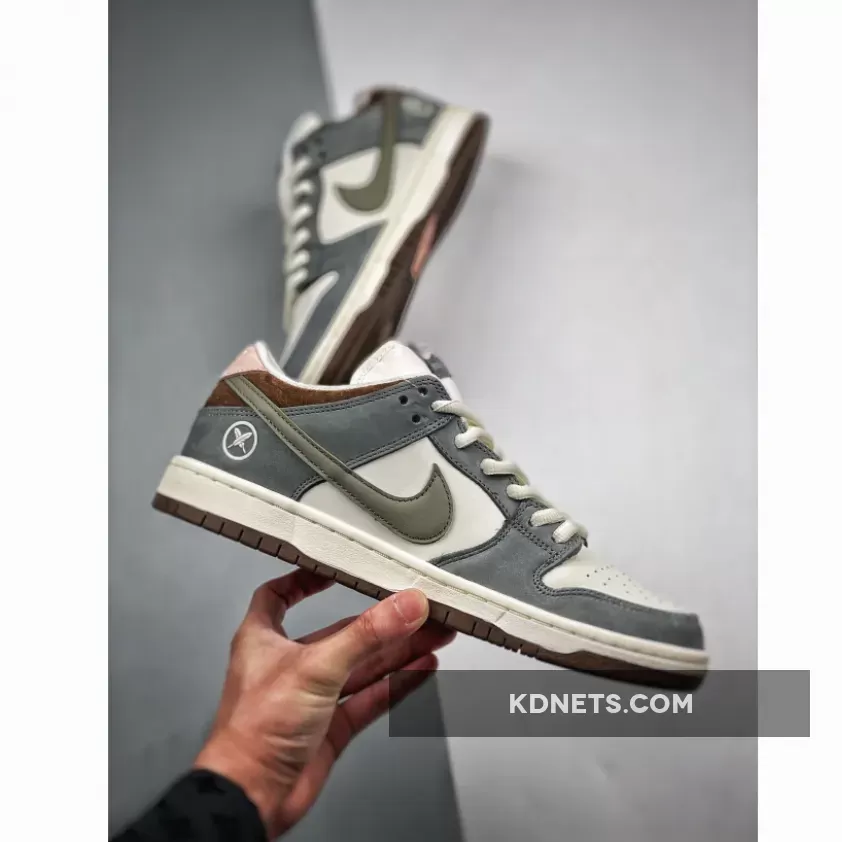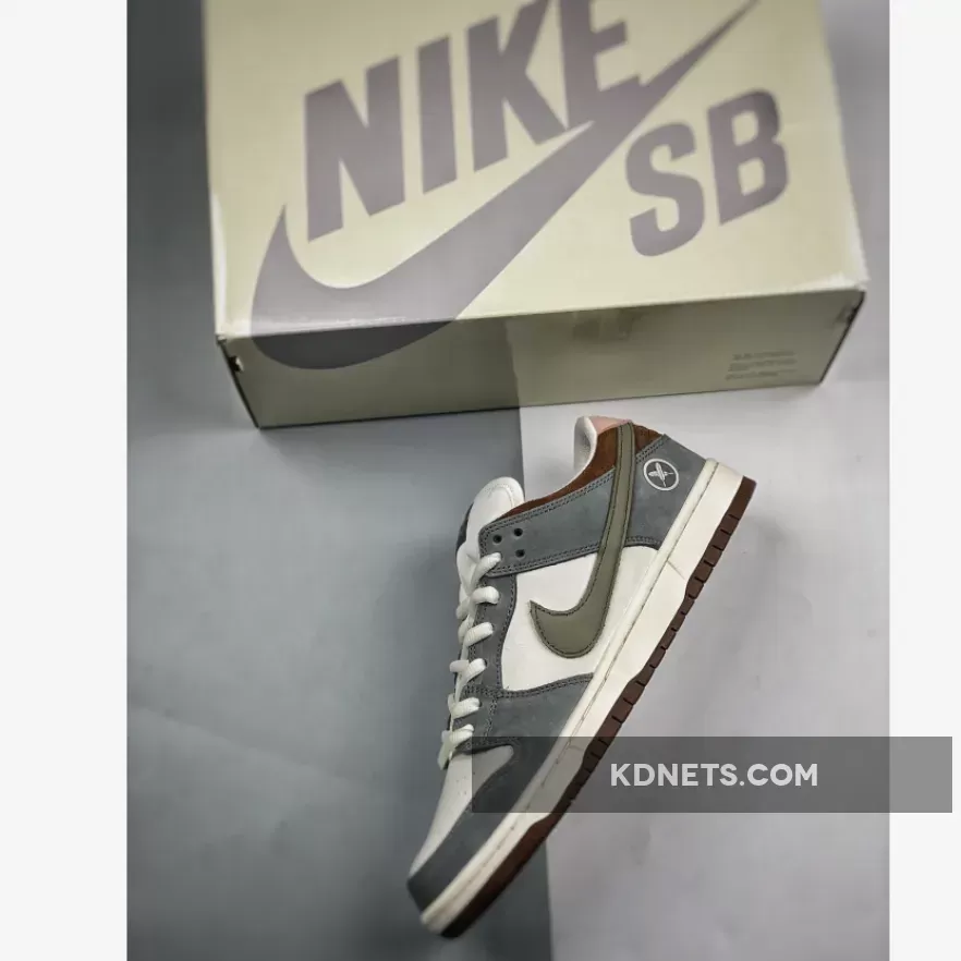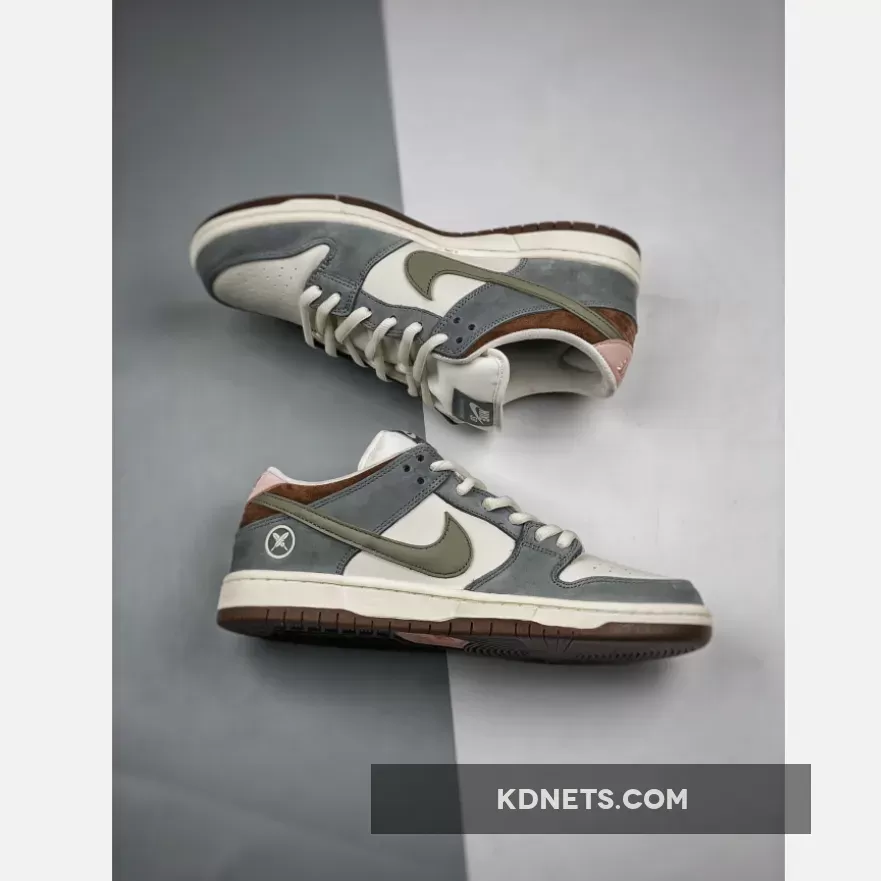 The Yuto Horigome x Nike SB Dunk Low is constructed out of leather, suede and mesh. It features a White base, Grey overlays and Chocolate Brown detailing around the collar and rubber outsole. Toe boxes, tongues and quarter panels are left colorless exteriors and come neighbored by supply suede overlays and smooth leather Swooshes that are drowned in a muted gray. The Japanese skater’s moniker replaces the usual shoe silhouette’s name under the tongue’s Nike SB branding while a cross-feather insignia is stamped to the lateral heels. A subtle touch of dusty pink arrives on the heightened parts of the heel while brown accents through the collars. Down below, the midsoles are designed with a clean white finish while the bottoms are done up with an all-brown paint job.